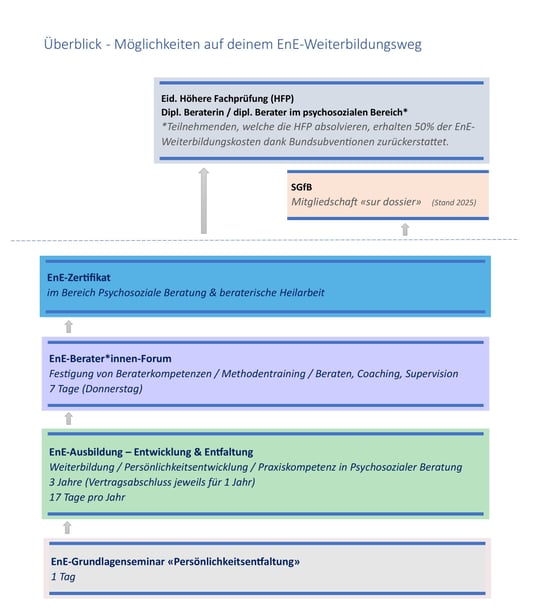 Die EnE-Ausbildung dient als Weg, sich selbst besser kennenzulernen und die eigene Geschichte zu verstehen, sowie bewusster und selbstbestimmt mit Anforderungen des Lebens umzugehen.